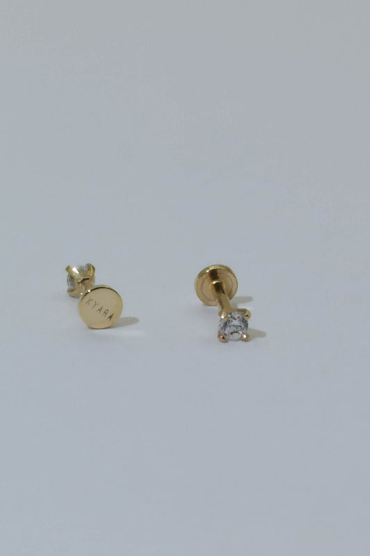 14k Gold Tiny CZ Internally Threaded Stud, 4mm, 5mm bar length,Monroe Piercing, Nose stud, Helix, Conch Tragus Cartilage Earring, Flat back