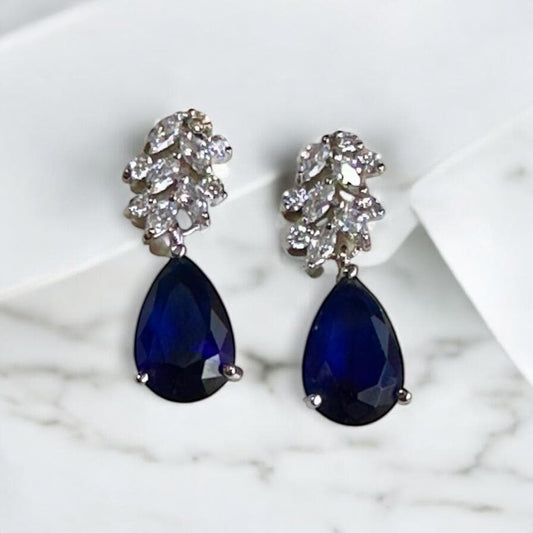 Sapphire Blue Cubic Zirconia Teardrop Earrings