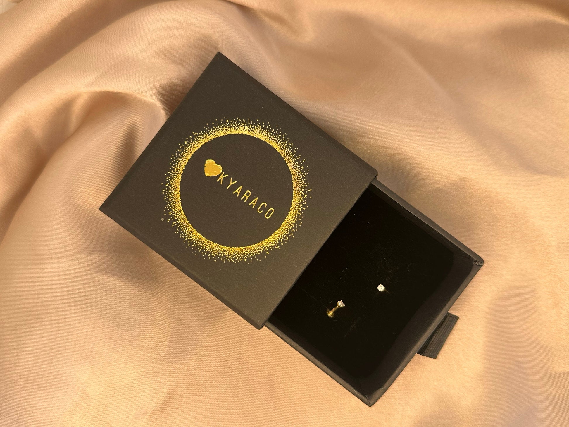 This piercing has the Kyara logo stamped on the flat back disc and will come packaged in a Kyara branded paper based box.