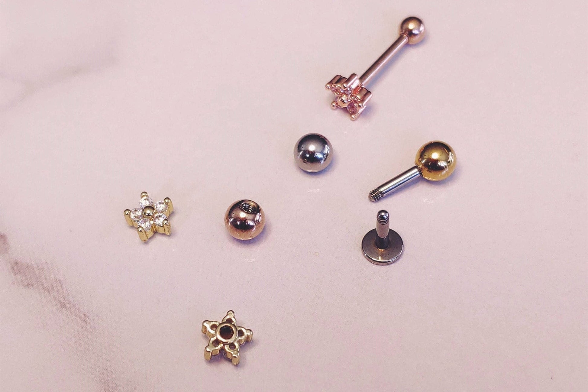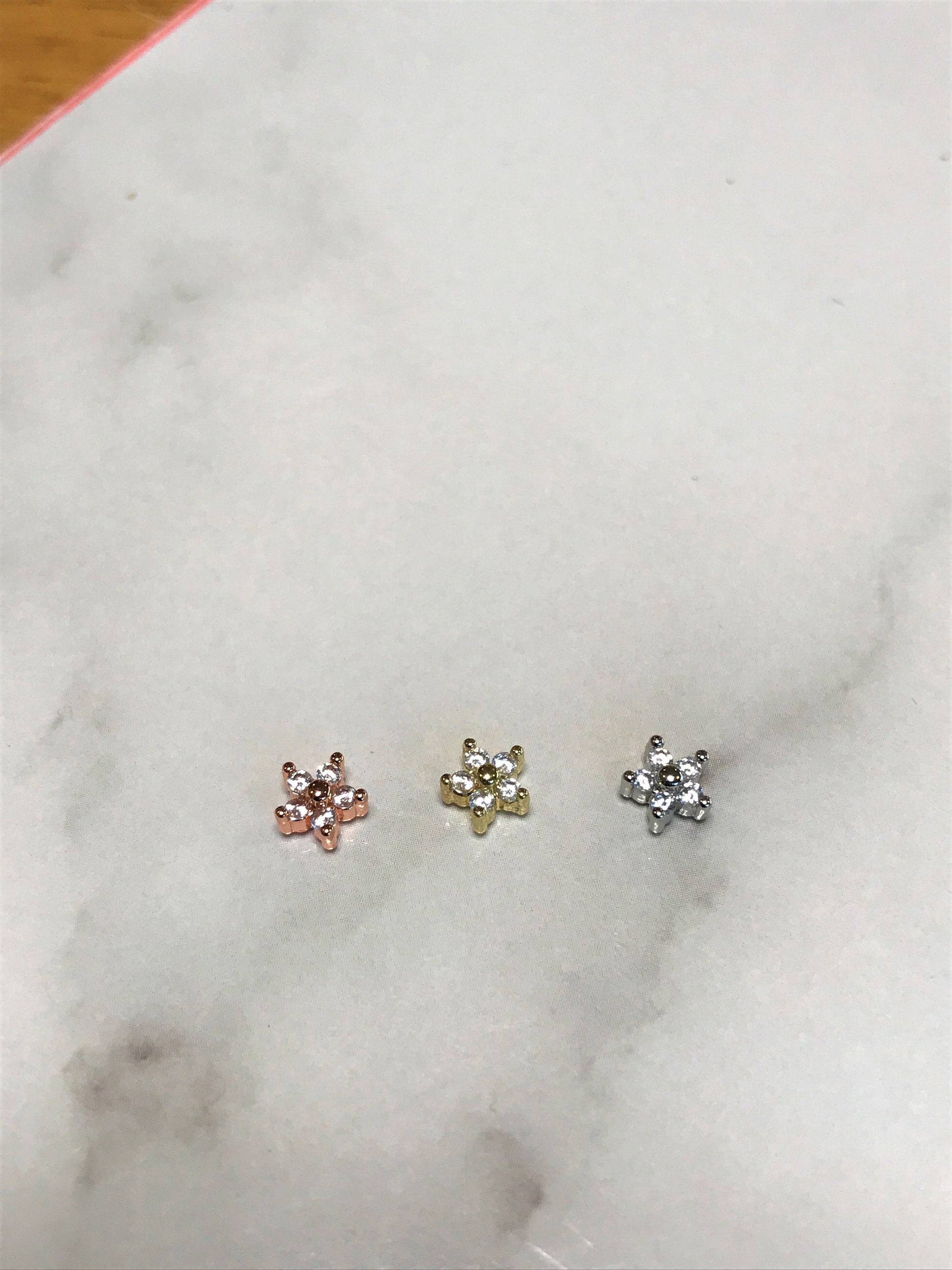 16G 18G Tiny Flower CZ Ear Piercing, Helix, Tragus, Cartilage Piercing, External Thread Ball End, Labret, 316LStainless Steel, 4mm-10mm Bar