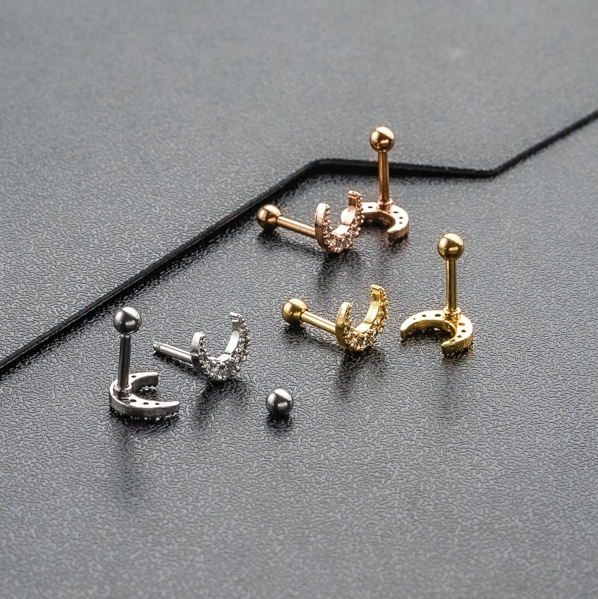 16G 18G Tiny Moon CZ Piercing, Helix, Conch, Tragus, Cartilage Stud, External Thread Ball End Labret, 316L Stainless Steel, 4mm-10mm Bar