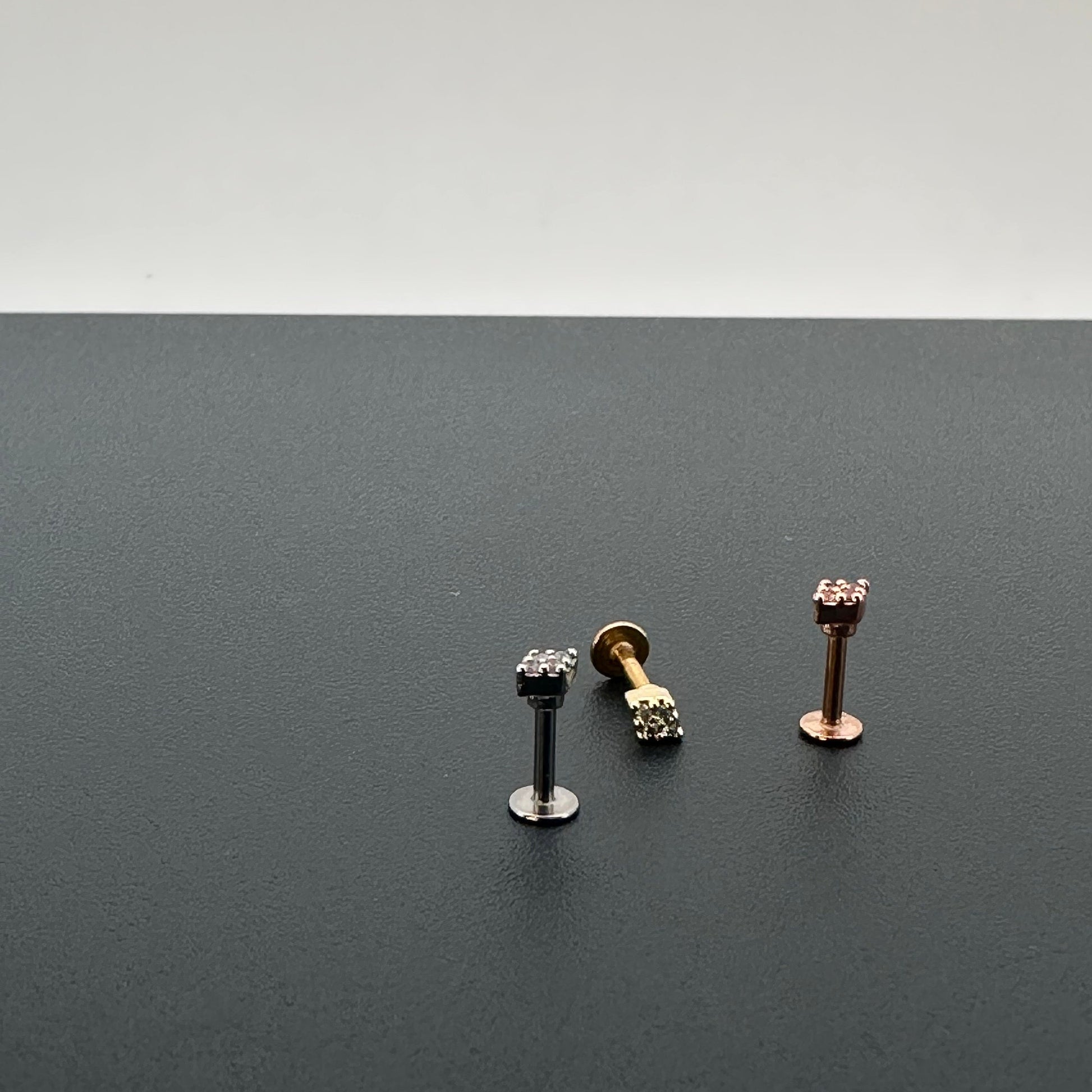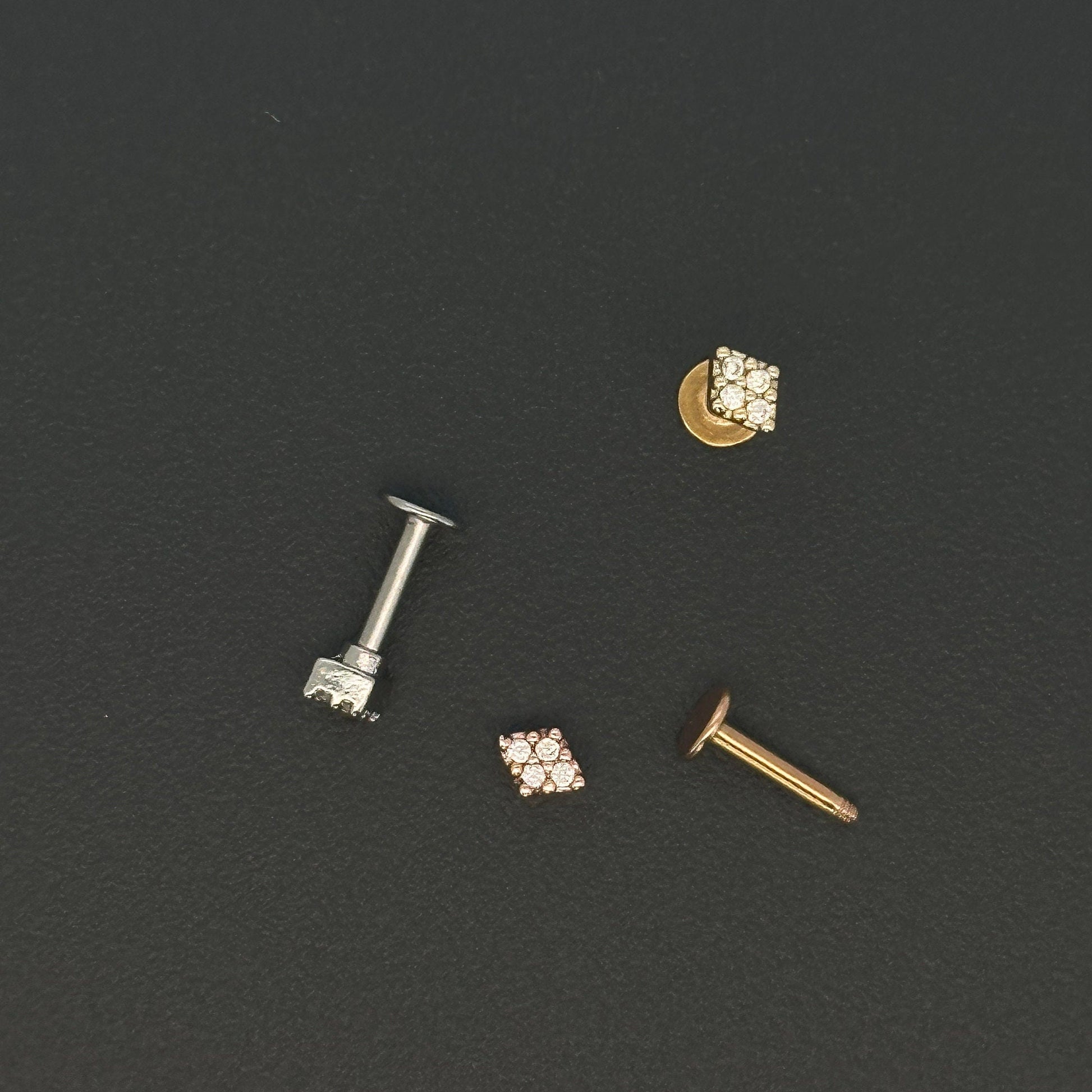 16G 18G Tiny Rhombus CZ Ear Piercing, Helix, Tragus, Cartilage Piercing, External Thread flat back Labret,316L Stainless Steel, 4mm-10mm Bar