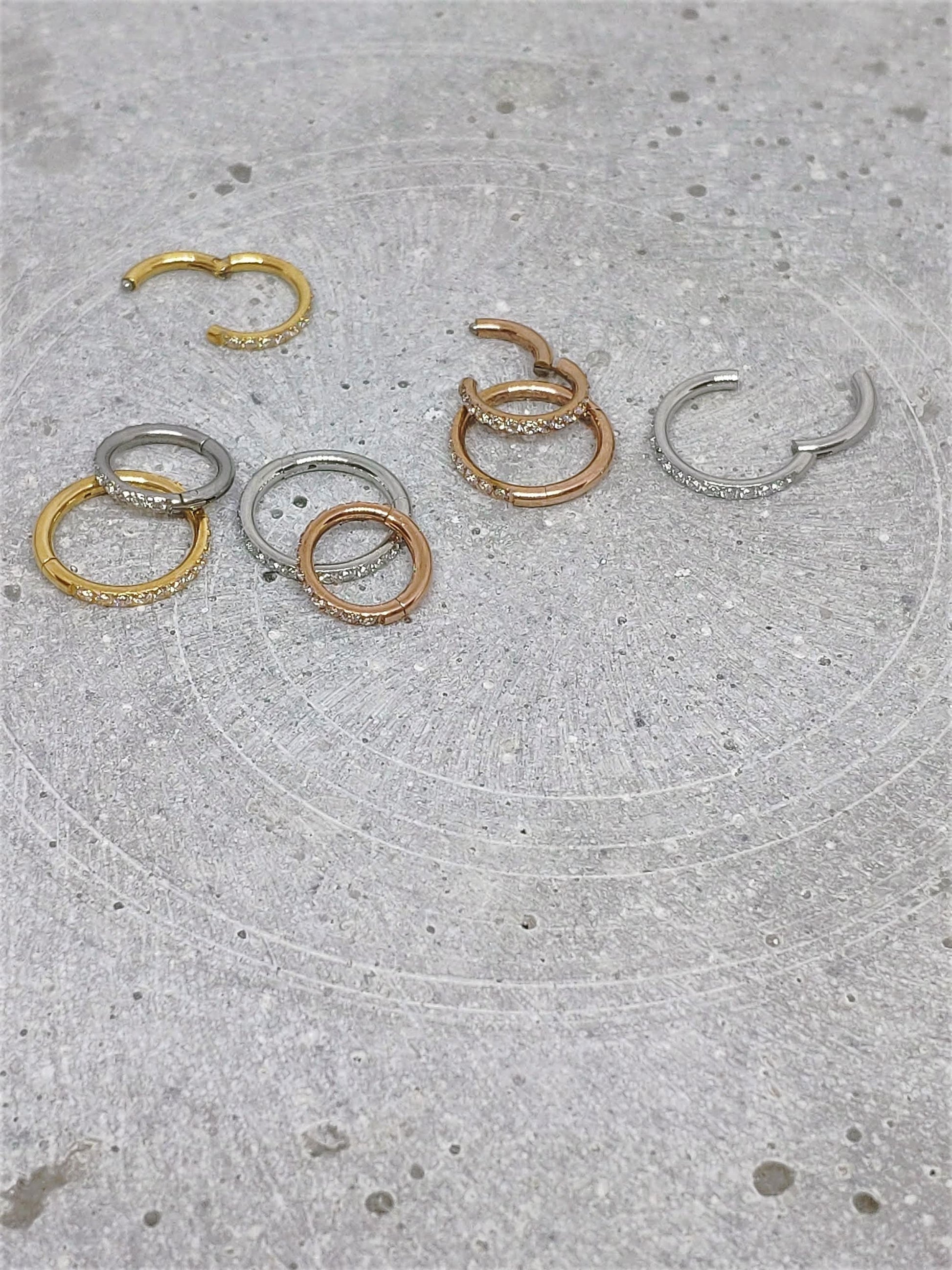 This Cubic Zirconia paved Stainless Steel Clicker Hoop Rings are the perfect accessory for any look. Crafted from 316L stainless steel PVD plated, these clicker rings feature elegant pave-set cubic zirconia for sparkle and shine. Durable and beautiful, these hoops will quickly become your go-to everyday accessory.